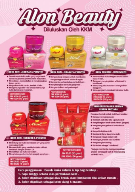 Setiap produk yang telah berdaftar dengan kkm sepatutnya mempunyai nombor pendaftaran di kotak atau botol produk.