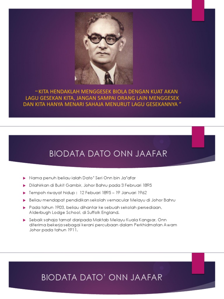 Dato onn saw the future of what harm the division among racial entities will bring to the country (what we are witnessing today). Dato onn jaafar adalah presiden umno yang pertama sejak umno ditubuhkan pada 11 mei 1946. Dato' onn jaafar merupakan seorang tokoh nasionalisme yang lantang memperjuangkan nasib dan hak orang melayu pada zaman pemerintahan british. Beliau sangat tegas dan berpegang teguh. E 'stato il fondatore della united malays national organization (umno) ed è stato anche.